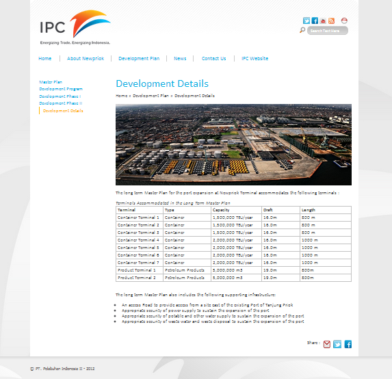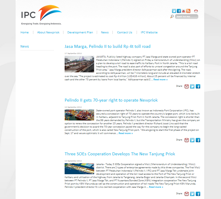 Pelabuhan Tanjung Priok (PERSERO) adalah perusahaan BUMN yang terletak di Tanjung Priok. Perusahaan pelabuhan internasional di Indonesia untuk menghadapi deregulasi yang disebabkan oleh Standard Internasional Pelabuhan. IPC telah mengembangkan rencana strategis jangka panjang untuk menjawab tantangan-tantangan tersebut. Dan pembangunan Pelabuhan & Website Newpriok adalah jawabannya.